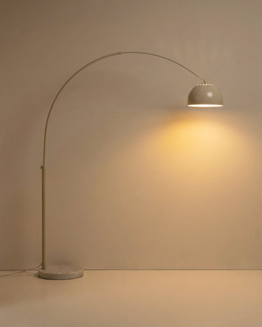 - Floor lamp made of steel with a white painted finish and a white marble base.