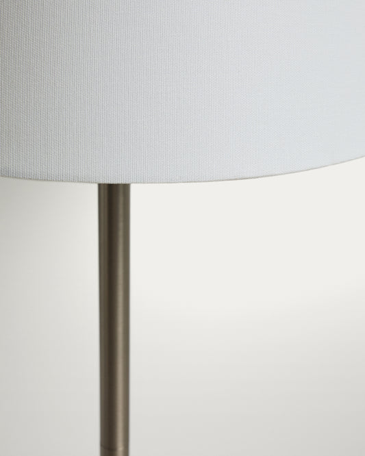 - Floor lamp made of metal with a brushed silver finish.