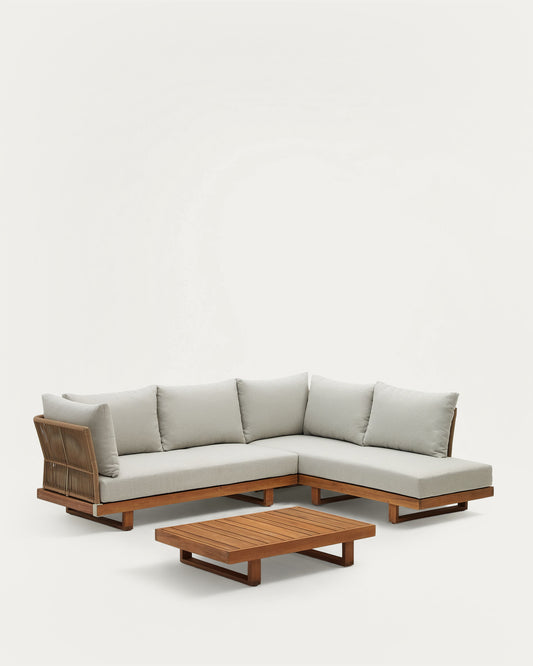 Razo corner sofa with 5 seats and coffee table, made of solid acacia wood
