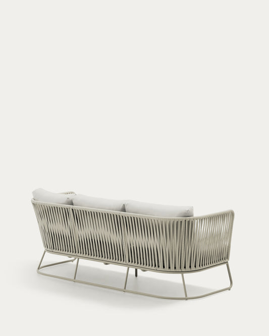 Saconca outdoor three-seater sofa made of rope and gray galvanized steel 189 cm