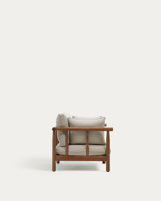 - A sofa made of solid eucalyptus wood.