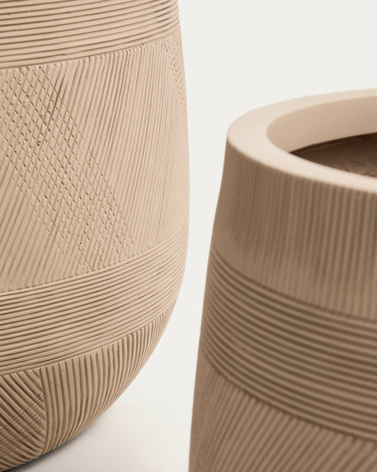 Tival set of 2 pots with beige cement effect Ø 50 cm / Ø 34 cm