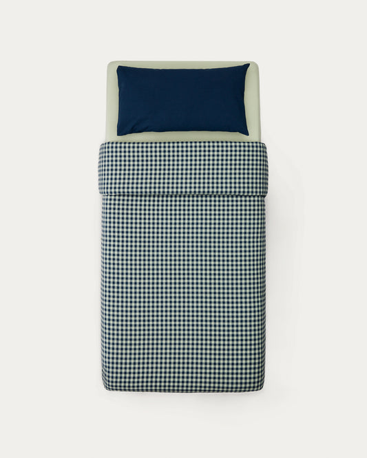 Set Yanil cover, bottom part and pillowcase 100% cotton green and blue squares 60x120cm