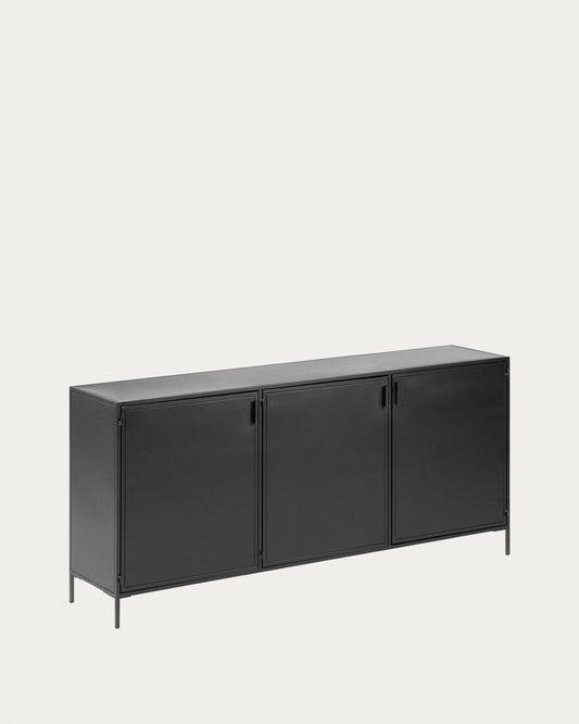 Shantay metal chest of drawers painted black with 3 doors, 160 x 72 cm