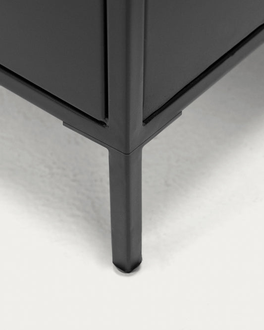 Shantay metal TV stand in painted black color with 1 door and fYok, 150 x 50 cm