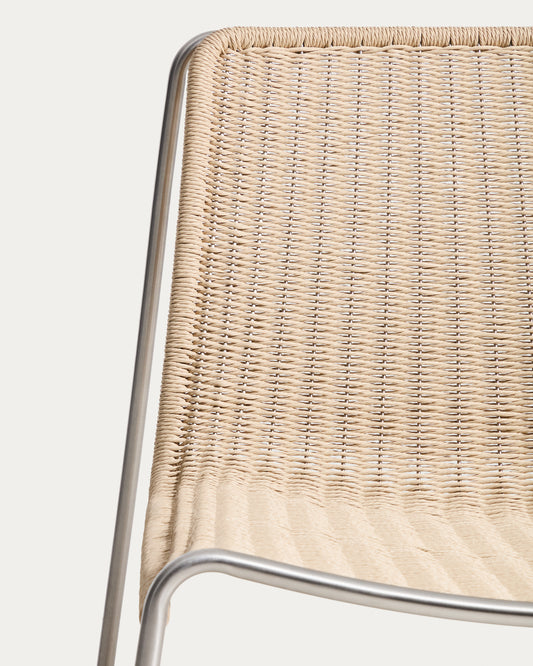 Tavari folding armchair in beige synthetic rope and stainless steel AISI 304 with brushed effect