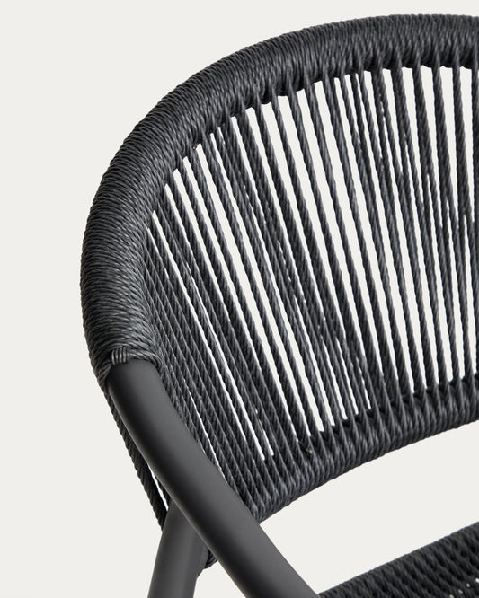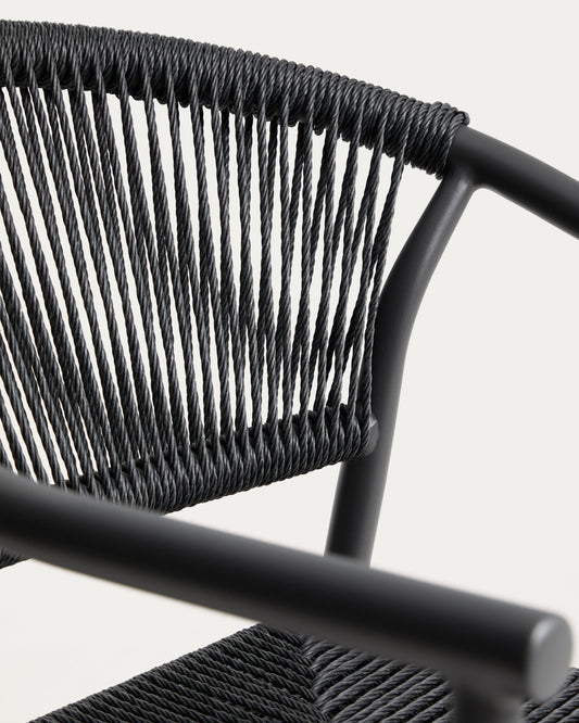 - Armrest and seat woven by hand from synthetic rope, suitable for outdoor use.