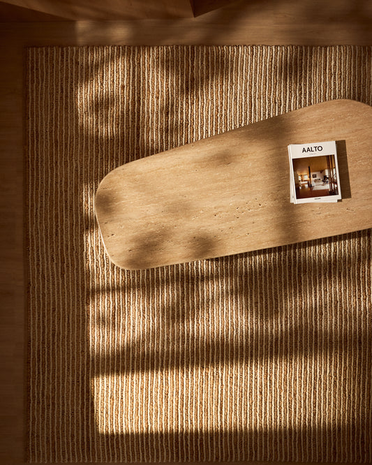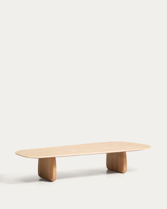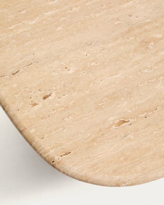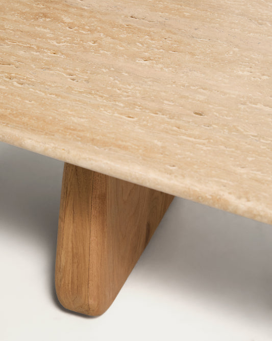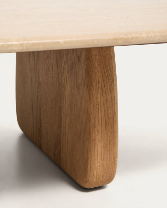 Sto za kafu Pirita od bež travertina i nogara od masivnog hrastovog drveta, prirodna završna obrada 147 x 65 cm FSC 100%