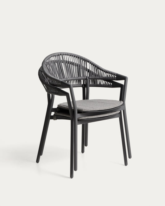 Outdoor folding chair Alimia made of aluminum in graphite color and synthetic rope in gray color