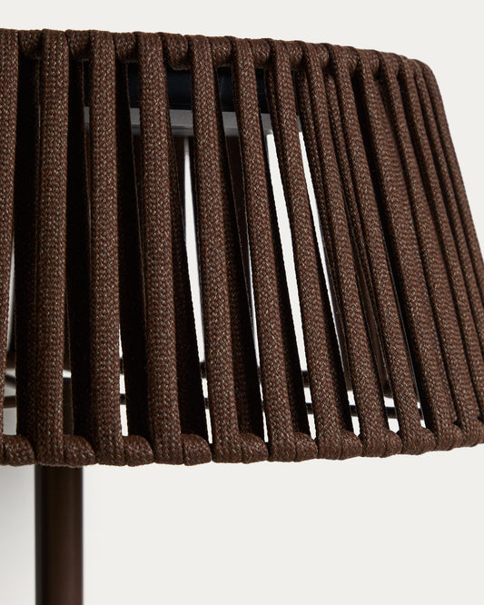 Table solar lamp Aldet for outdoor spaces made of flat string with metal base, color brown Ø46 cm