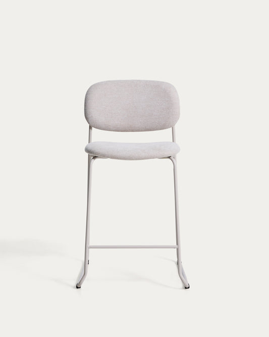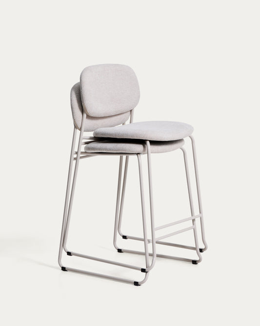 Tabure Meli od bukle tkanine bež boje, nogari od metala bež boje, visina 65 cm, FSC Mix Credit, na slaganje