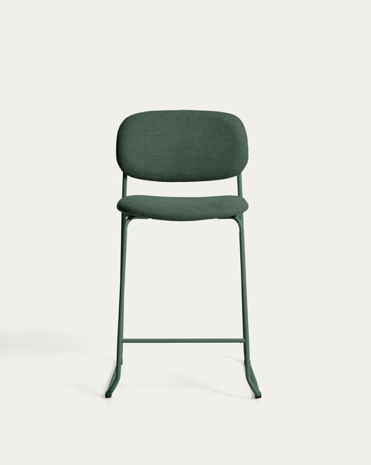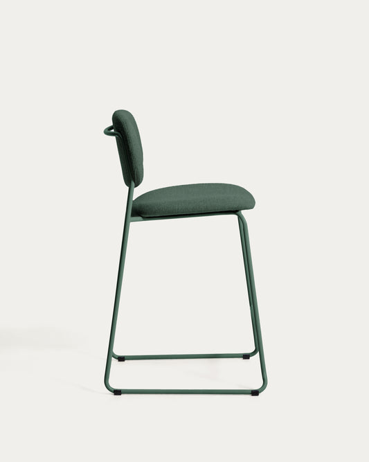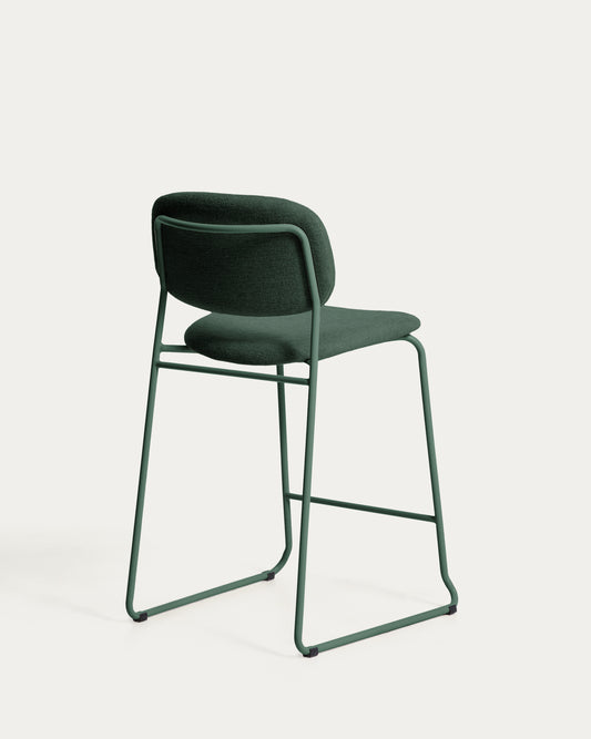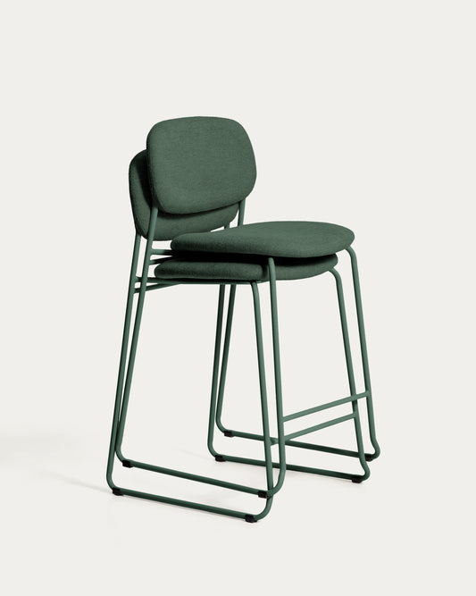 Tabure Meli od bukle tkanine zelene boje, nogari od metala zelene boje, visina 65 cm, FSC Mix Credit, na slaganje