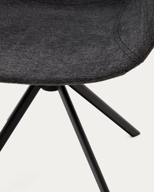 tissiana self-centering swivel chair in dark gray chenille and matte black aluminum
