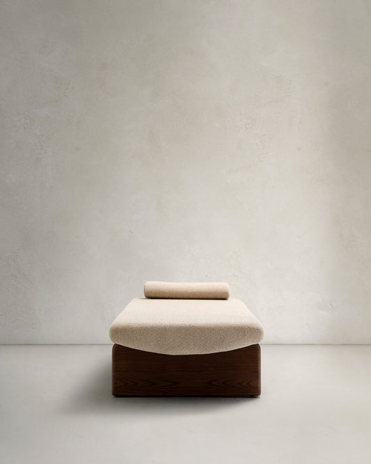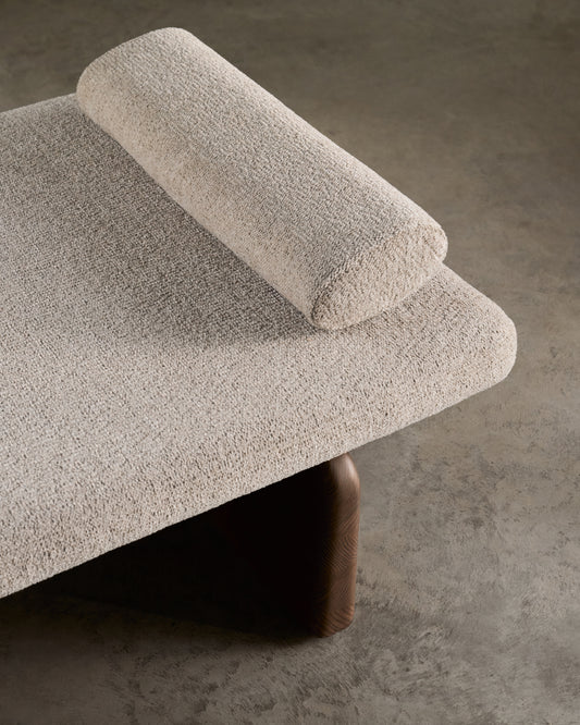 topaz divan in beige chenille with solid ash wood in walnut color, 200 cm FSC 100%