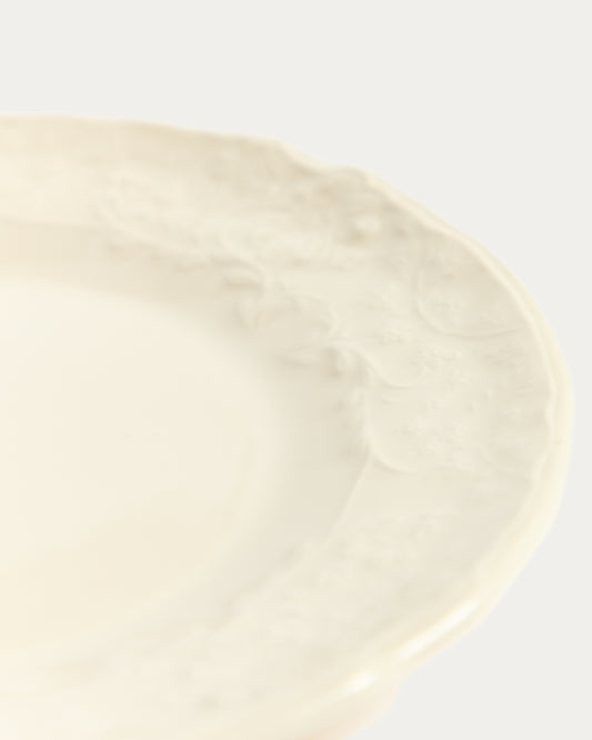 - Beige ceramic dessert plate with a romantic design.