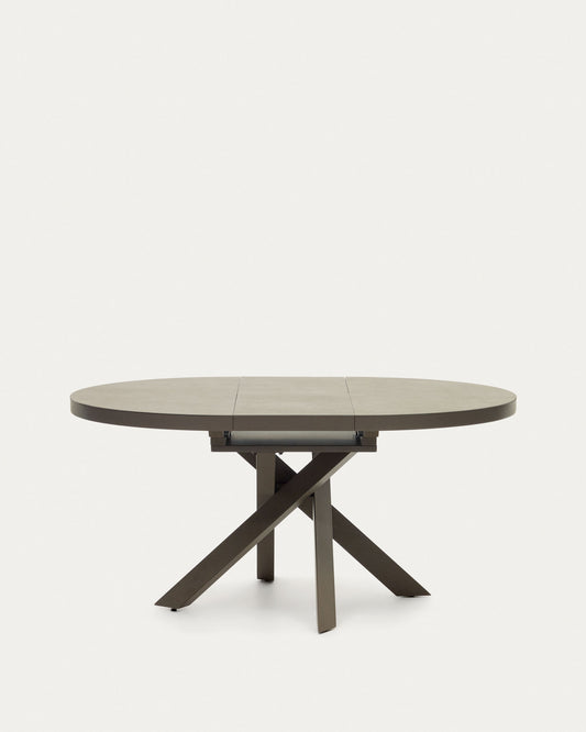Vashti round extendable table, porcelain and steel legs with brown finish, Ø 120(160) cm