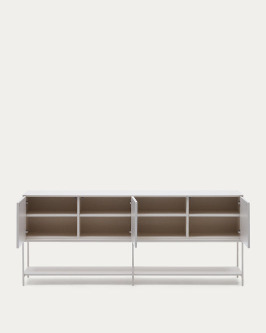 Clear chest of drawers with 3 doors, white lacquered MDF 195 x 80 cm
