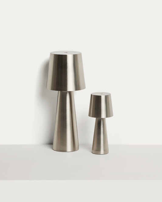 Large Arenys table lamp made of metal with a shiny silver finish