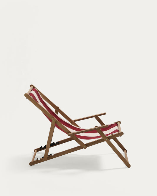 Wilara burgundy and beige striped outdoor folding lounger made of FSC 100% solid acacia wood
