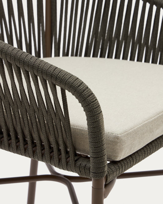 - A chair with a seat made of hand-woven cable, resistant to UV rays.