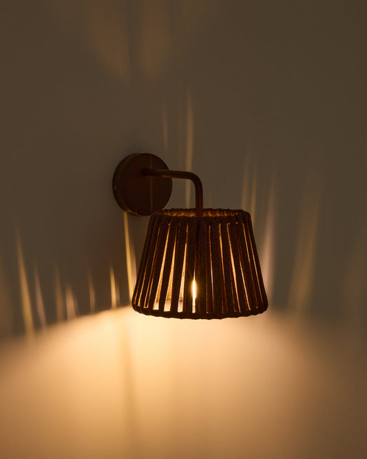 - Zidna lampa sa abažurom od ravnog konopca i metalnom konstrukcijom.