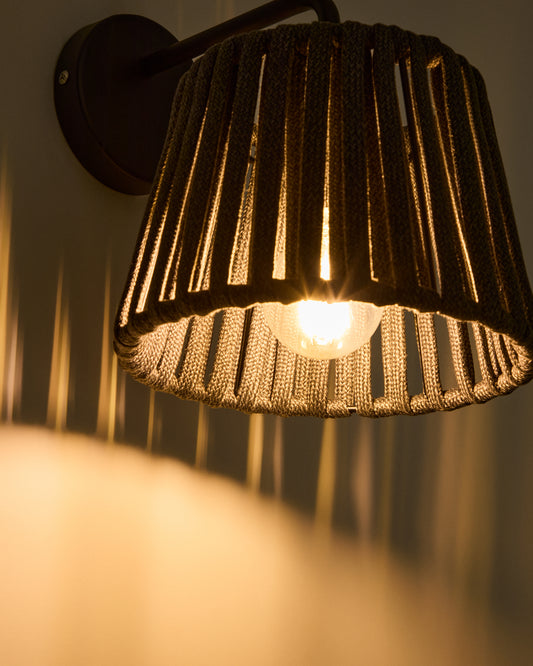 - Zidna lampa sa abažurom od ravnog konopca i metalnom konstrukcijom.
