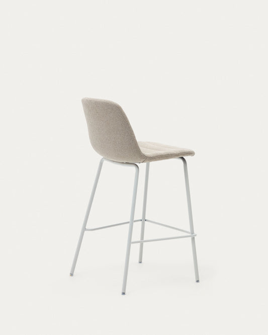 Zunilda chair in beige chenille and steel with matt white finish height 65 cm FSC 100%