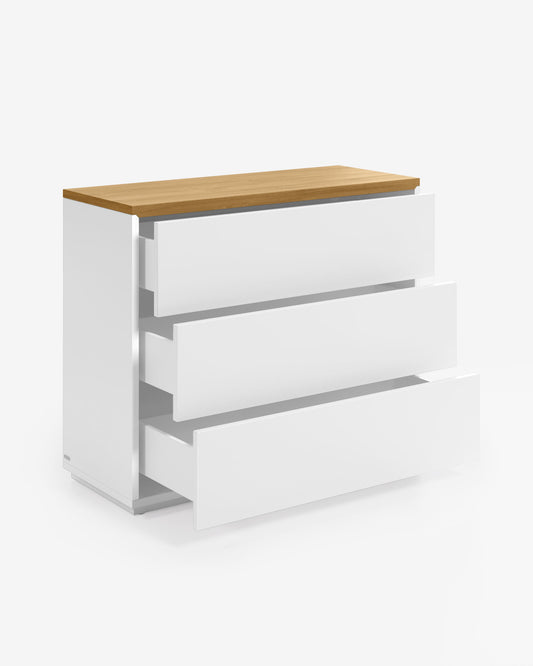 Abilen hrastov furnir sa 3 fioke i beli lak komoda 90 x 75 cm FSC 100%
