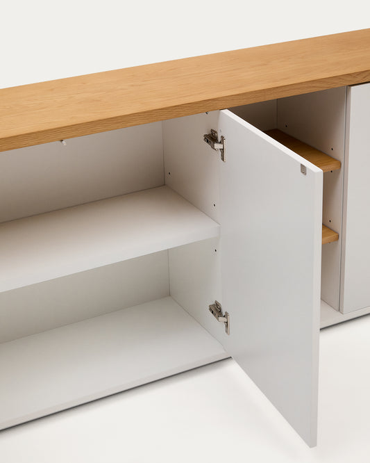Abilen hrastov furnir komoda sa 3 vrata sa belim lakom, 180 x 75 cm FSC 100%