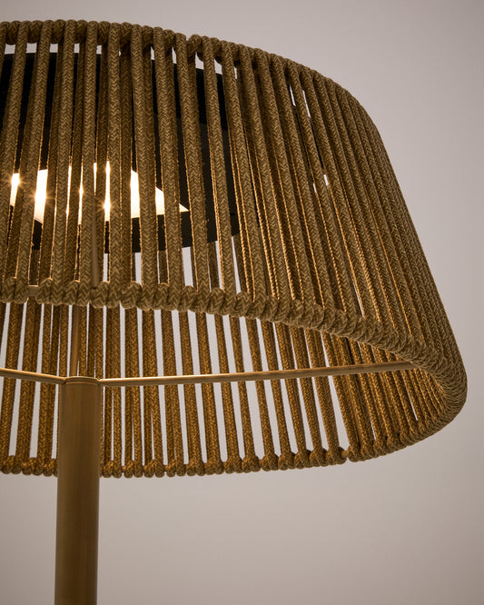 - Prenosna solarna podna lampa sa abažurom od sivog užeta.