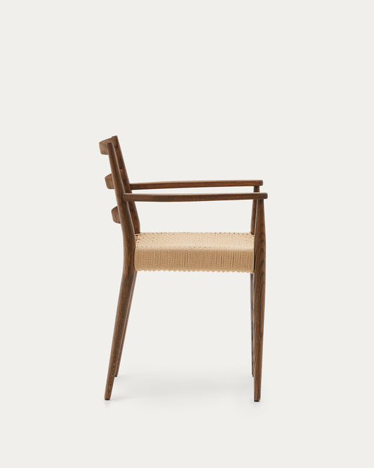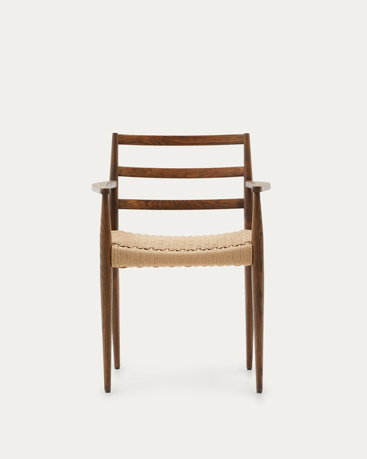 Analy stolica sa naslonima za ruke od punog hrastovog drveta u boji oraha i sedištem od užeta FSC 100%