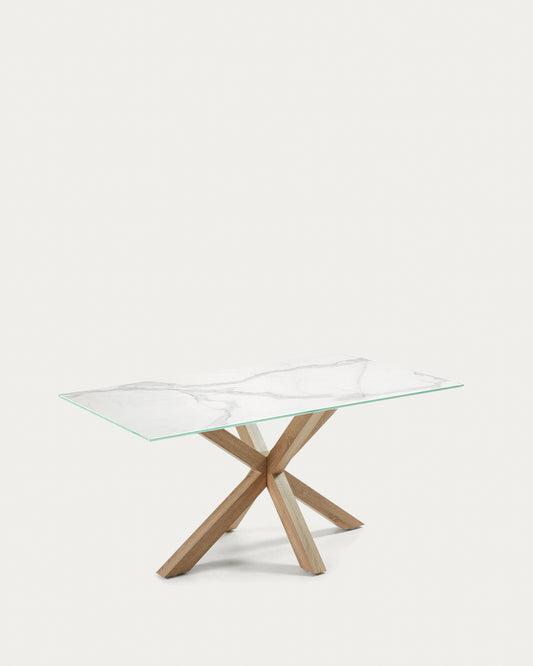 Argo sto od belog Kalos porcelana i čeličnih nogu sa efektom drveta 180 x 100 cm