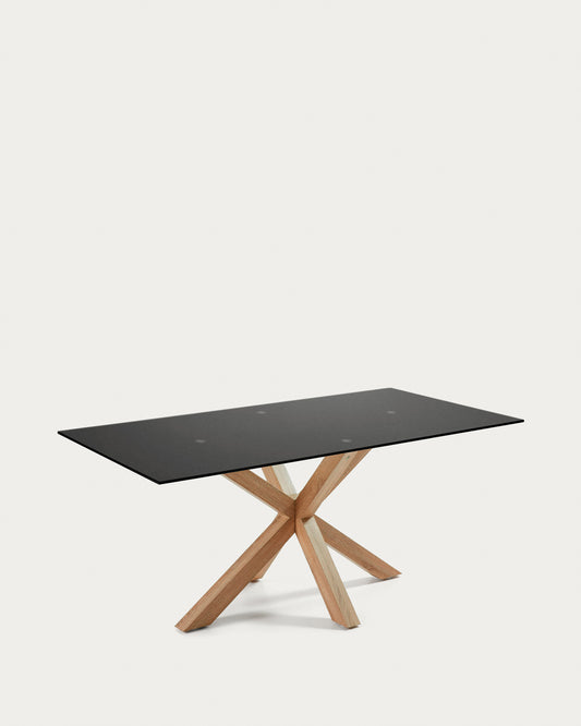 Argo sto sa crnim staklenim i čeličnim nogama sa završnom obradom drveta 200 x 100 cm