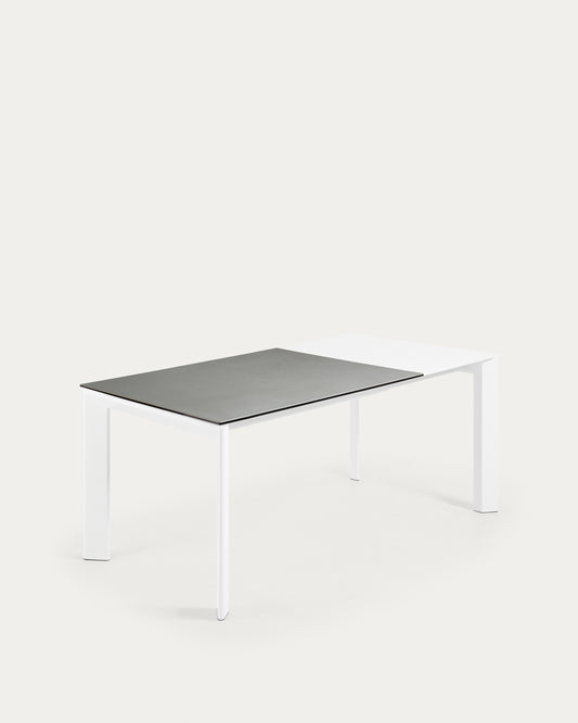 Axis keramički sto koji se može produžiti po osovini sa Hidra Plomo završnom obradom i belim čeličnim nogama 120 (180) cm