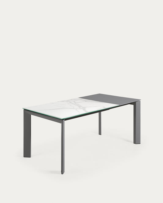 Axis porcelanski sto na razvlačenje sa završnom obradom Kalos Blanco i tamno sivim nogama, 120 (180) cm