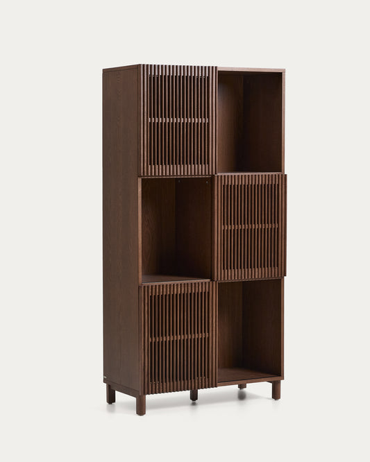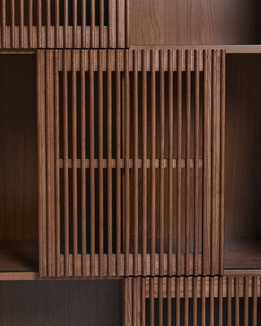 - Polica sa telom od furnira jasena, a nogare i klizna vrata od punog jasena sa završetkom boje oraha.