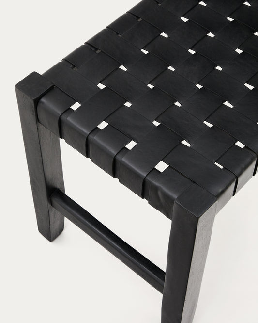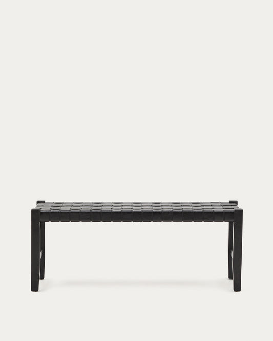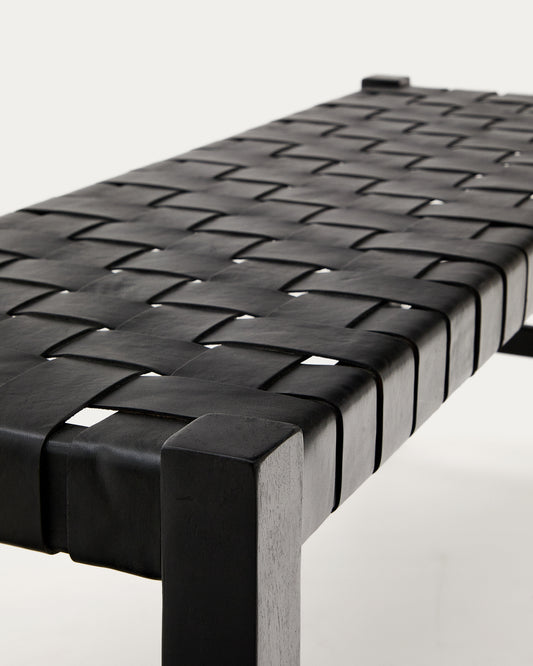 Calixta klupa od kože i masivnog drveta mahagonija sa crnom završnom obradom 120 cm