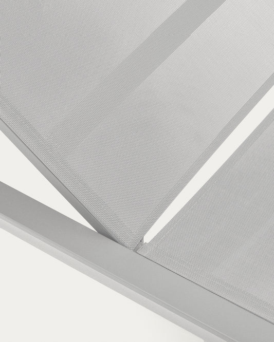 - Ležaljka sa aluminijumskom strukturom i tekstilnom završnom obradom u svetlo sivoj boji.