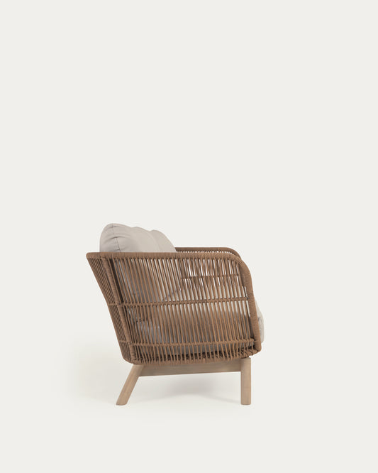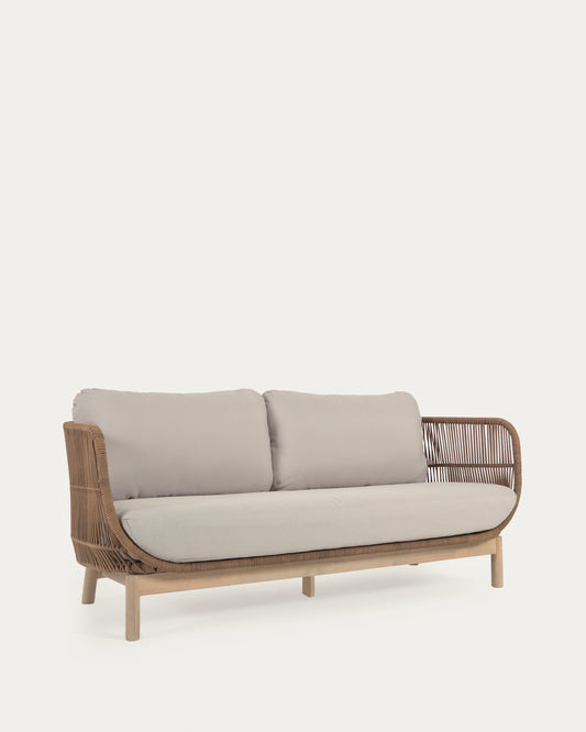 - Spoljna sofa sa 3 sedišta od punog bagremovog drveta i ručno tkanog poliesterskog gajtana.
