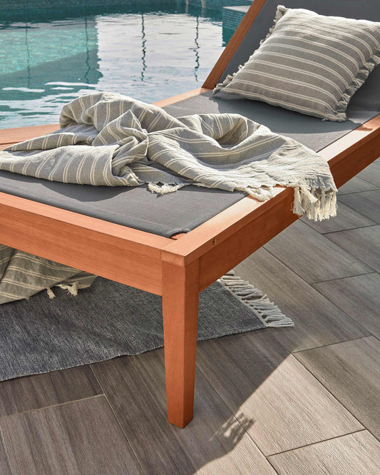 Caterin ležaljka za sunčanje na otvorenom u sivoj boji od punog drveta eukaliptusa, FSC 100%