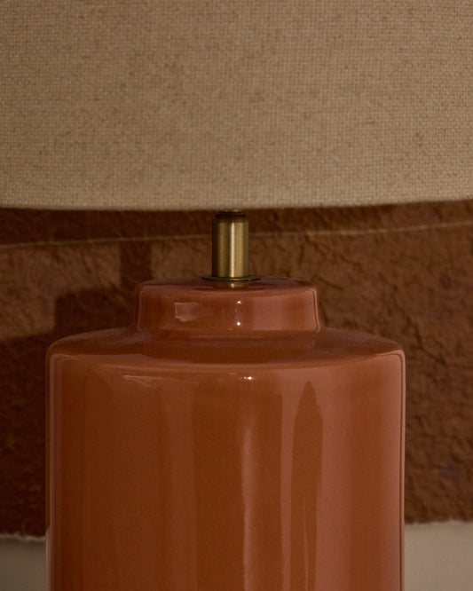 Daeli keramička stona lampa sa narandžastom završnom obradom i bež pamukom