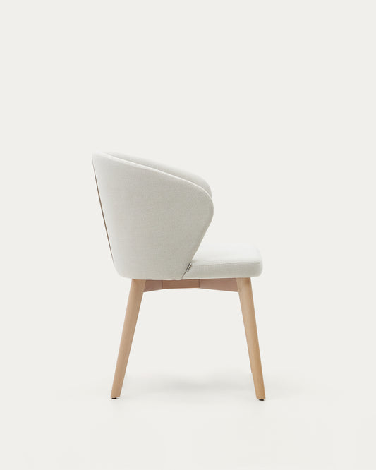 Darice stolica od bež šenila i punog bukovog drveta u prirodnoj završnoj obradi FSC 100%