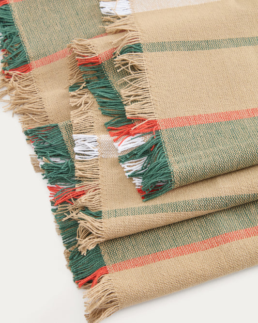 Davia pamučni stolnjak sa zelenim prugama i resama 50 x 150 cm
