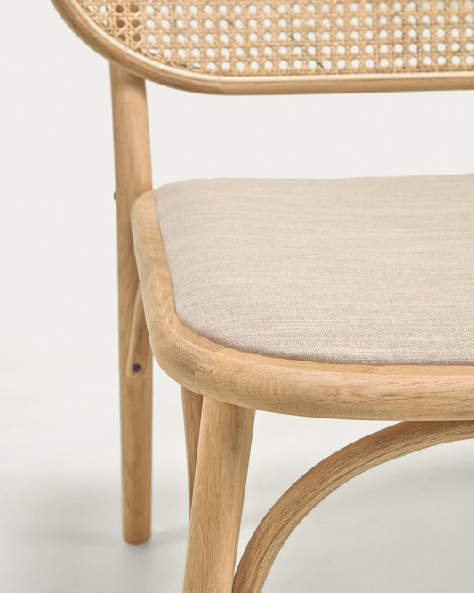 Stolica od masivnog hrasta Doriane sa prirodnom završnom obradom i tapaciranim sedištem FSC Mik Credit