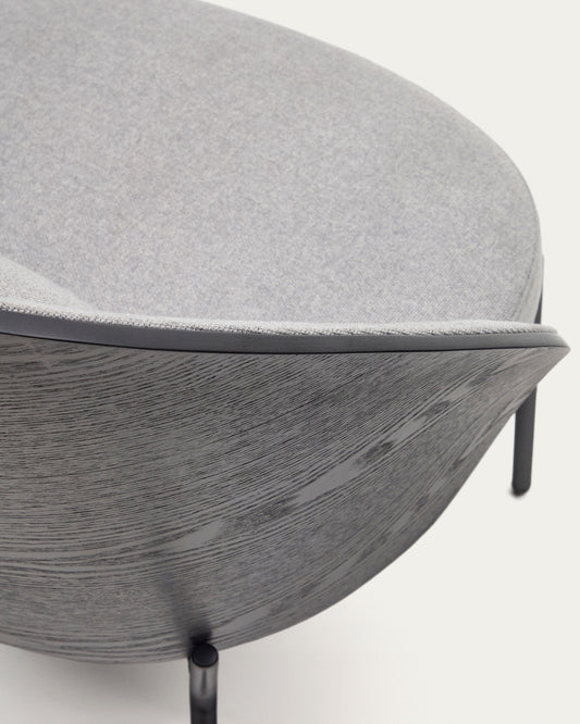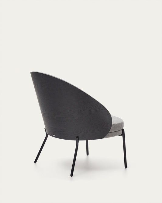 Eamy svetlosiva fotelja u furniru jasenovog drveta sa crnom završnom obradom i crnim metalom