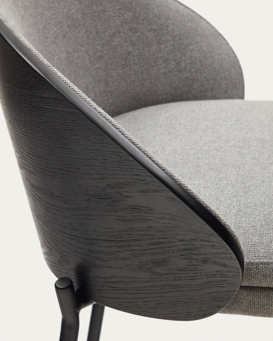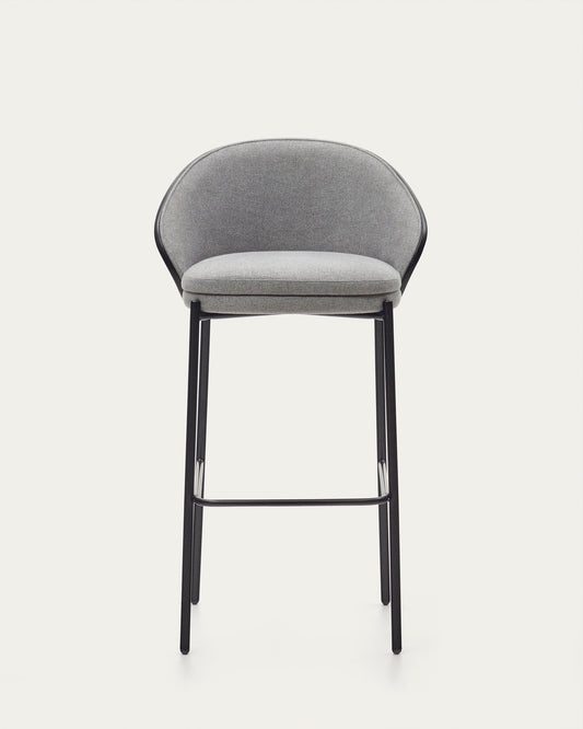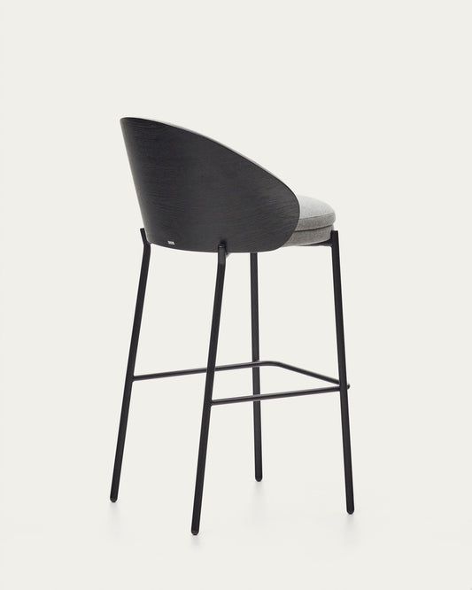 Eamy tabure svetlo sivi furnir od šenila i jasena sa crnom završnom obradom i crnim metalom, 77 cm