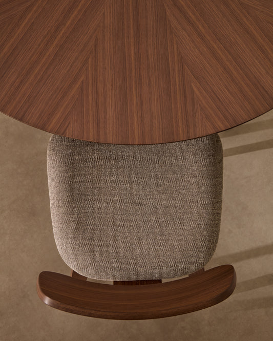 Gena stolica od bež ženila sa furnirom od oraha i okvirom od gumenog drveta