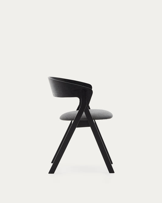 Godia stolica od jasenovog furnira i punog gumenog drveta sa crnom završnom obradom i sivim ženilom