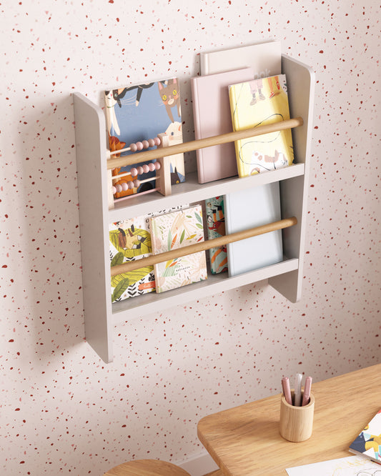 - Dečiji regal od punog bora sa prirodnim i lakiranim završetkom.