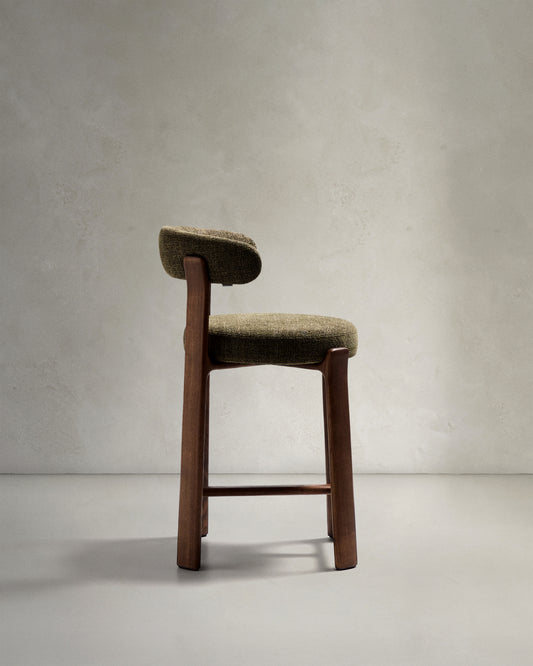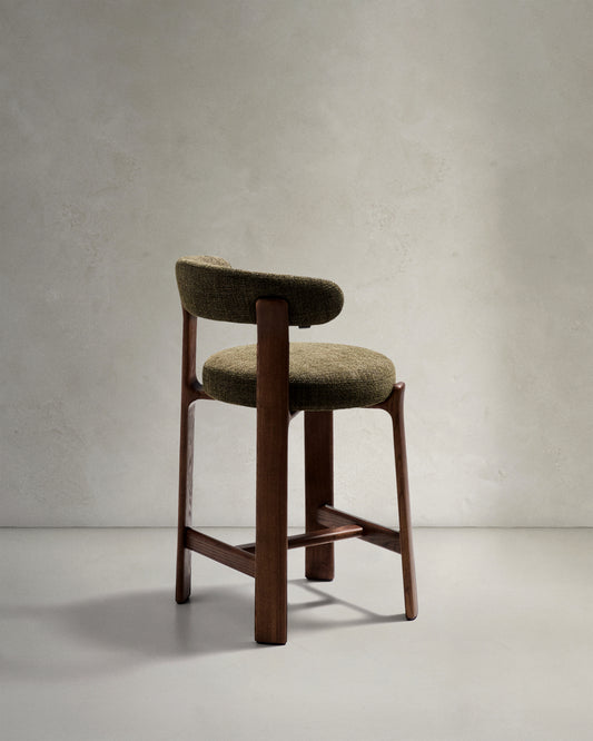Granite stolica od zelenog šenila i punog drveta jasena sa završnom obradom u boji oraha FSC 100% 65cm